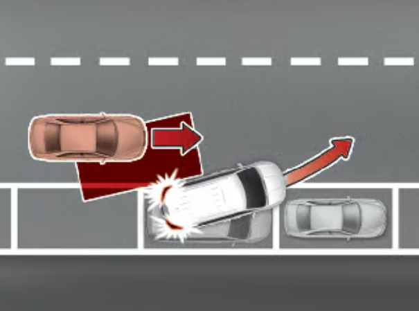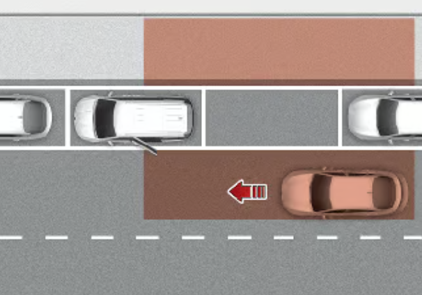 차량이 주차되어 있는 상태에서 출차를 위해 전진 시 후측방 레이더를 활용하여 후측방에서 다가오는 차량과의 충돌 위험이 판단되면 차량이 충돌하지 않도록 제동을 돕습니다.