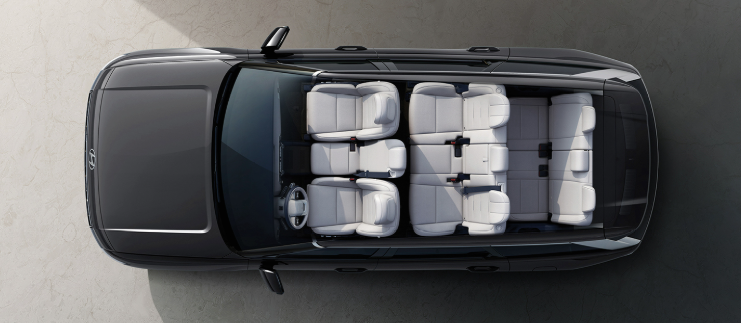 • 팰리세이드: 7인승 또는 9인승 모델을 제공하여 다인원 탑승과 공간 활용성을 극대화했습니다. 9인승 모델은 1열 센터시트를 갖추고 있어 더 많은 인원이 탑승할 수 있습니다.