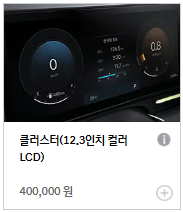 만약 현대 스마트센스Ⅲ가 필요 없다면 클러스터만 단독으로 선택하여 계기판의 시인성과 고급감을 높일 수 있습니다. 파킹어시스트를 선택하려면 12.3인치 클러스터가 필요합니다.