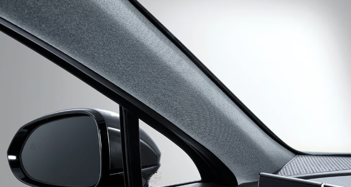 헤드라이닝 (천장 부분)과 필라(창문과 창문 사이의 기둥 부분)에 멜란지 니트 내장재가 저용됩니다. 서로 다른 색이 혼합되어 편안한 느낌을 주는 클래식 고급 원단이 적용되어 차량 내부의 고급감을 높였습니다.