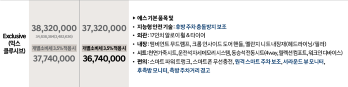 특히 프리미엄이나 S 트림에서 추가로 추가 비용을 들여 옵션을 선택하는 것보다, 처음부터 익스클루시브를 선택하는 것이 훨씬 합리적입니다.