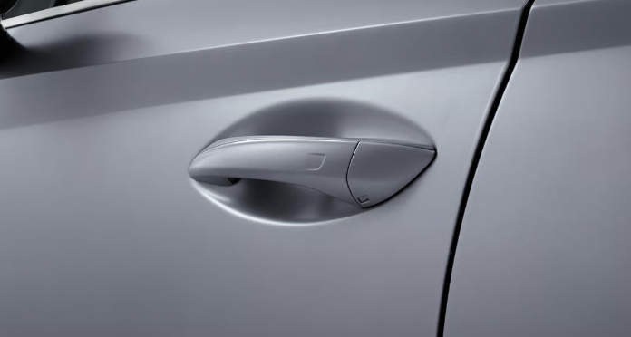 스마트폰을 주머니나 가방에 넣은 채로 차량에 접근하면 자동으로 인식되어 도어 핸들을 터치만 해도 문이 열립니다.