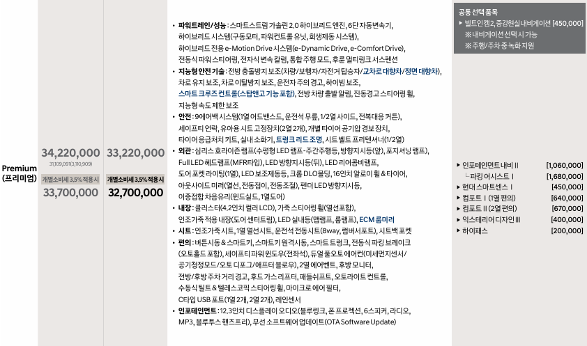 - 기타: 심리스 호라이즌 램프, LED 조명 시스템, 크롬 DLO몰딩 등 기본 사양 유지