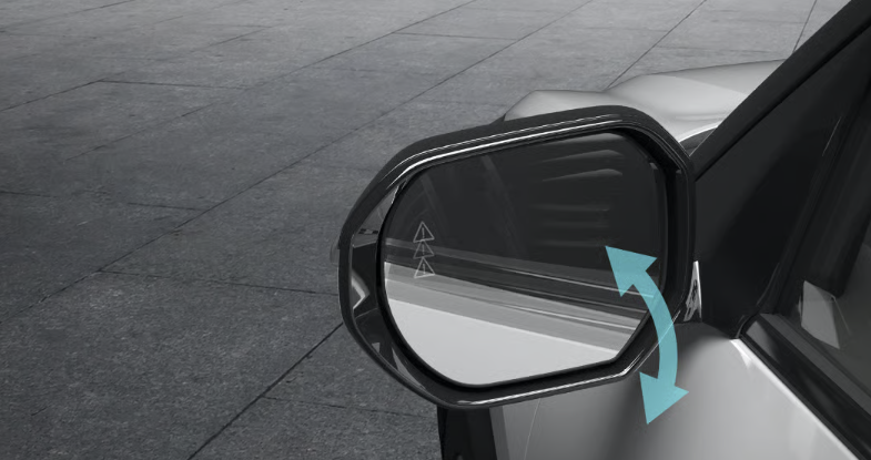 차량의 변속레버가 후진(R)에 위치할 경우 아웃사이드 미러의 각도가 자동으로 하향 변경되는 기능입니다. 각도가 변경된 아웃사이드 미러는 아웃사이드 미러 선택 스위치 변경 또는 변속레버가 후진 위치에서 다른 위치로 변경될 경우 자동으로 원위치됩니다.