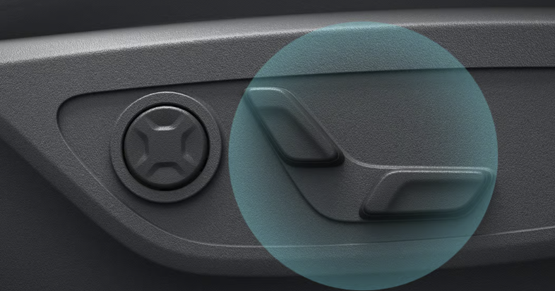동승석 시트의 우측 하단부에 위치한 좌석 조절 스위치를 사용하여 동승석 좌석을 전동으로 조절할 수 있습니다.