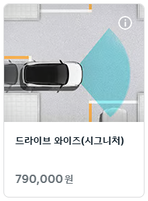 초보자라면 드라이브 와이즈 옵션을 추가하는 것이 사고를 예방하는데 큰 도움이 됩니다. 사고를 1회만 예방하더라도 옵션의 값은 뽑아낼 수 있기 때문에 드라이브 와이즈 옵션 추가를 추천합니다.